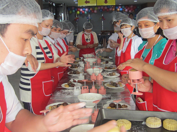 走進(jìn)世博大廈服務(wù)中心,鮮花隨處可見(jiàn),華美的裝修設(shè)計(jì)使人心曠神怡,現(xiàn)場(chǎng)充滿了濃郁的節(jié)日氛圍。大家熱情高漲、十分投入,和面、搟皮,包餡,然后刷上蛋液,撒上芝麻,最后烘烤出爐。員工們邊動(dòng)手制作月餅邊盡情享用自己的“完美作品”,并拍照留念,記錄下了許多歡樂(lè)的瞬間。而現(xiàn)場(chǎng)專業(yè)的月餅師傅則耐心地傳授制作月餅的要領(lǐng),聽(tīng)得大伙頻頻點(diǎn)頭。另外,除了可以親手制作月餅,還可現(xiàn)場(chǎng)烘焙,讓員工們可現(xiàn)場(chǎng)品嘗至自己制作的月餅,活動(dòng)現(xiàn)場(chǎng)處處洋溢著溫馨和美的氣氛……
