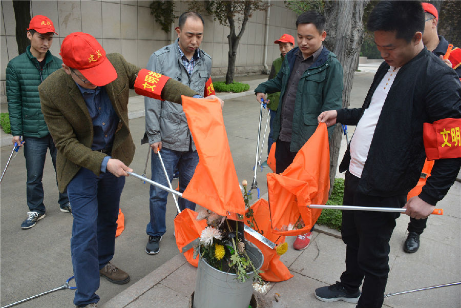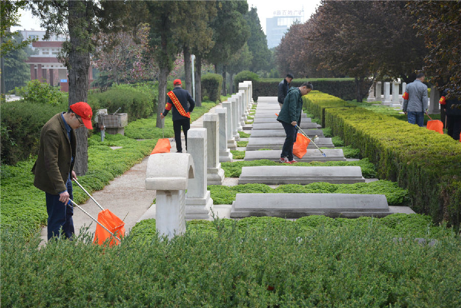 三、開展“倡議文明緬懷,減少廢棄污染”拾撿垃圾志愿服務(wù)活動(dòng)。緬懷先烈活動(dòng)結(jié)束后,市建投公司志愿者們在烈士陵園內(nèi)開展“倡議文明緬懷,減少廢棄污染”拾撿垃圾志愿服務(wù)活動(dòng)。每位志愿者都手持垃圾鉗,認(rèn)真將散落在紀(jì)念碑前以及隱藏在雜草中的廢棄鮮花、飲料瓶、紙張等垃圾拾撿起來放入提前準(zhǔn)備好的垃圾袋中。活動(dòng)持續(xù)一個(gè)小時(shí),志愿者們在祭奠先烈的同時(shí)以自己的實(shí)際行動(dòng)表達(dá)崇敬之情,并倡導(dǎo)以獻(xiàn)一束花、敬一杯酒、植一棵樹、清掃墓碑等方式寄托哀思,將祭拜逝者的傳統(tǒng)習(xí)俗以更加環(huán)保、健康、安全、文明的方式表達(dá),營造文明祭祀的良好氛圍。