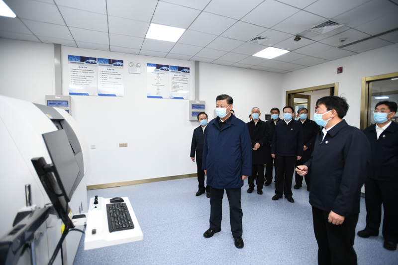 10月22日下午,中共中央總書記、國家主席、中央軍委主席習近平在山東省濟南市主持召開深入推動黃河流域生態(tài)保護和高質量發(fā)展座談會并發(fā)表重要講話。這是座談會前,習近平21日下午在東營市勝利油田勘探開發(fā)研究院二氧化碳氣驅實驗室考察自主創(chuàng)新情況。新華社記者 李學仁 攝