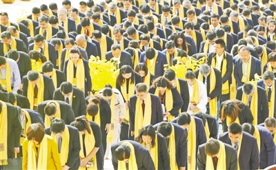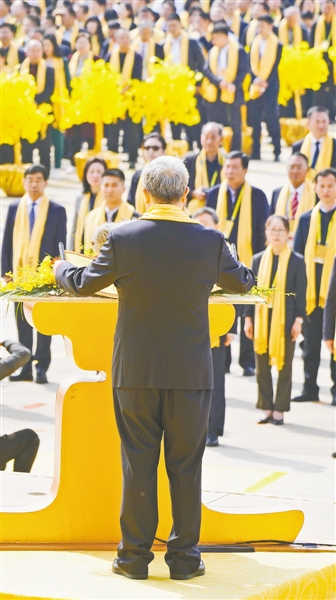 凈手上香。郝龍斌,全國人大代表、中國和平統(tǒng)一促進會香港總會常務(wù)副會長凌友詩,英國荷柏穎中藥公司總裁、第一位擔(dān)任英國市政廳閣員高職的華裔官員王臺生,泰國中華總商會主席林楚欽,緬甸中華總商會榮譽會長楊釧玉,華為集團高級副總裁楊瑞凱,深圳國際控股有限公司董事會主席李海濤,優(yōu)必選科技股份有限公司董事會主席、執(zhí)行董事兼行政總裁周劍,全國人大代表、全國勞模、好想你健康食品股份有限公司董事長石聚彬走到臺前,凈手上香。