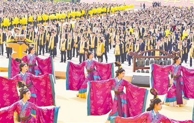 王凱代表省委、省政府發(fā)表了熱情洋溢的致辭,誠摯歡迎各位嘉賓、各界朋友的到來,衷心感謝長期以來給予河南的關(guān)心支持。他說,河南作為黃帝出生地、創(chuàng)業(yè)地、建都地,歷史上幾經(jīng)鼎盛、幾度輝煌。進入新時代,中原兒女秉承祖志、奮發(fā)圖強,凝聚了奮勇爭先的創(chuàng)造偉力,續(xù)寫了更加出彩的絢麗篇章,一幅百業(yè)昌隆、物阜民豐、欣欣向榮的壯美畫卷在中原大地徐徐展開。祭祖緬德、當繼往而開來,慎終追遠、須奮斗以自強。習(xí)近平總書記在新時代推動中部地區(qū)崛起座談會上,為中部地區(qū)高質(zhì)量發(fā)展擘畫了新藍圖、標定了新方位、賦予了新使命。我們將始終牢記習(xí)近平總書記殷殷囑托,錨定“兩個確?!保掷m(xù)實施“十大戰(zhàn)略”,全面推進中國式現(xiàn)代化建設(shè)河南實踐,在奮力譜寫中部地區(qū)崛起新篇章中勇挑大梁、走在前列,在強國建設(shè)、民族復(fù)興新征程上展現(xiàn)新?lián)?、作出新貢獻。