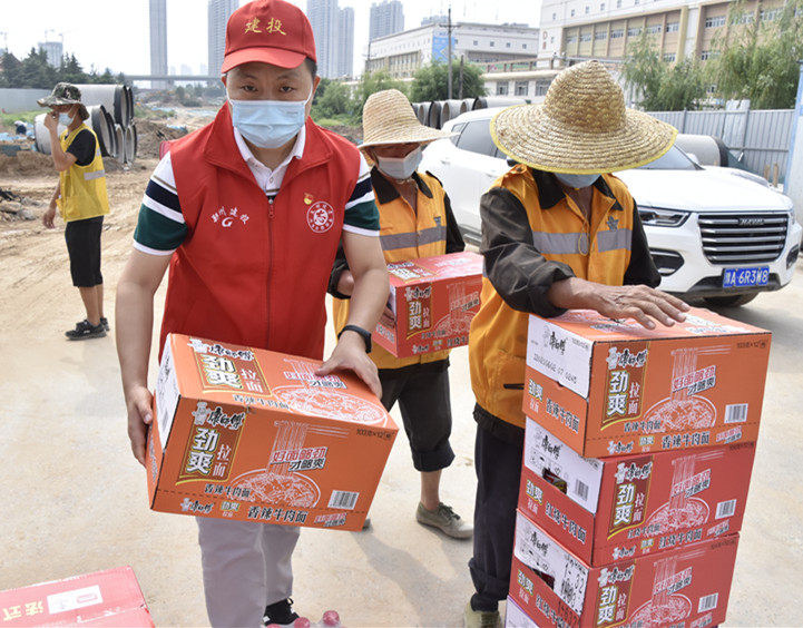 8月11日,集團(tuán)領(lǐng)導(dǎo)帶隊(duì)到三全路重點(diǎn)民生工程項(xiàng)目,慰問一線工人,詢問大家工作生活情境,送上餐點(diǎn)盒飯及防疫物資。