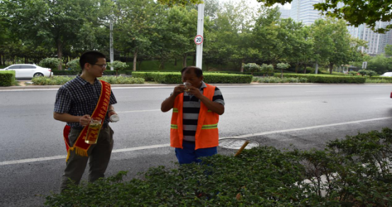 一、高溫送清涼,義務送水活動。近日,持續(xù)的高溫席卷鄭州。即使是這樣的高溫天氣,環(huán)衛(wèi)工人仍頭頂烈日,堅守在高溫一線,確保轄區(qū)內整潔有序、干凈衛(wèi)生。7月14日上午,市建投公司黨員志愿者自備祛暑茶水,帶著水壺、水杯,慰問了酷暑中仍然堅守在一線的鄭東新區(qū)環(huán)衛(wèi)工人,為他們送上了夏季“解渴水”,感謝高溫下堅守崗位的他們?yōu)榄h(huán)衛(wèi)工作所付出的辛苦和汗水,并叮囑大家一定要加強防暑措施,注意安全。此次活動,不僅在這個夏天為一線環(huán)衛(wèi)人員送來了清涼,更彰顯了來自企業(yè)的愛心和責任。