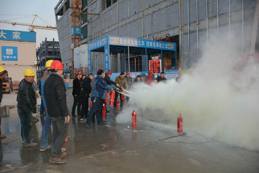 活動(dòng)共分為三個(gè)部分。第一部分為安全生產(chǎn)培訓(xùn),通過(guò)觀看安全生產(chǎn)教育視頻資料、工程部經(jīng)理結(jié)合項(xiàng)目實(shí)際宣貫施工現(xiàn)場(chǎng)消防安全法律法規(guī)及總工對(duì)安全生產(chǎn)工作再部署、再?gòu)?qiáng)調(diào)、再落實(shí)等方式,開(kāi)展了一期卓有成效的安全生產(chǎn)培訓(xùn)活動(dòng);第二部分為辦公場(chǎng)所應(yīng)急疏散演練,通過(guò)模擬項(xiàng)目部辦公區(qū)域發(fā)生火情,員工有序緊急疏散的方式,提高員工消防安全自救能力;第三部分為滅火實(shí)踐演練,在工地現(xiàn)場(chǎng)模擬火情,員工實(shí)際操作滅火器進(jìn)行滅火,極大地增強(qiáng)了員工滅火動(dòng)手能力。