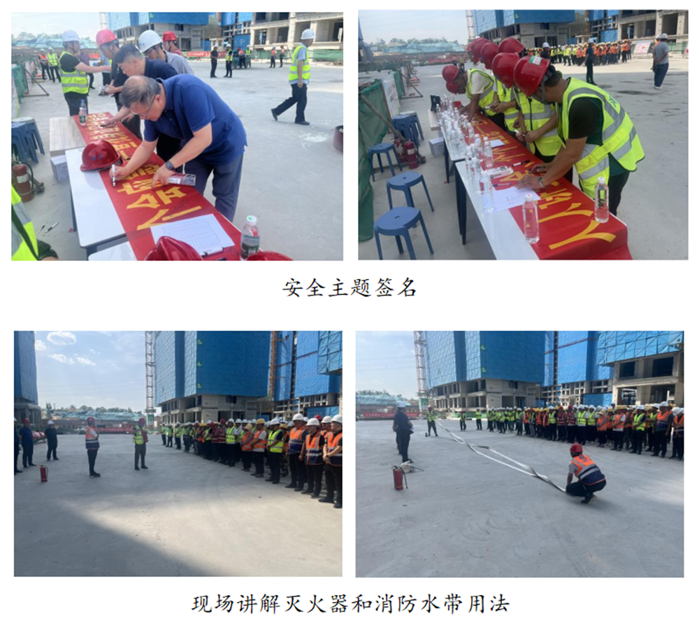 活動期間,大家積極參與安全主題簽名和主題宣誓,講解員現(xiàn)場講解消防水帶和滅火器的用法,解答安全生產(chǎn)相關(guān)知識,并開展了消防實戰(zhàn)演練。集團(tuán)公司分管安全生產(chǎn)的總經(jīng)理助理黃志澎作重要講話,強(qiáng)調(diào)了安全生產(chǎn)的重要性,要求各單位扎實做好今年防汛工作,并為一線工人發(fā)放防暑降溫藥品和安全知識手冊200套。