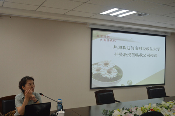 為進(jìn)一步提升干部職工商務(wù)禮儀素質(zhì)和職業(yè)素養(yǎng),8月11日下午,集團(tuán)公司邀請(qǐng)河南財(cái)經(jīng)政法大學(xué)教授任曼女士開展了商務(wù)禮儀培訓(xùn)活動(dòng)。培訓(xùn)會(huì)由監(jiān)事會(huì)主席付立文同志主持,集團(tuán)公司本部全體干部職工、各項(xiàng)目部及部分下屬公司的相關(guān)同志參加了此次培訓(xùn)。
