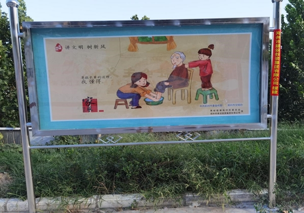 四、設(shè)置宣傳載體,營(yíng)造文明家園濃郁氛圍。今年,集團(tuán)公司為郭崗村提供3萬(wàn)余元幫扶資金幫助其打造了精神文明專欄,分為家風(fēng)家訓(xùn)(名人家風(fēng))專欄,“講文明 樹(shù)新風(fēng)”(孝當(dāng)先、傳承家風(fēng))、“文明健康 有你有我”公益廣告等內(nèi)容,使社會(huì)主義核心價(jià)值觀深刻融入到村民的生產(chǎn)生活和精神世界,形成全體村民的修身行善共識(shí)和明禮守法自覺(jué),為促進(jìn)郭崗村經(jīng)濟(jì)健康發(fā)展、構(gòu)建美麗鄉(xiāng)村、文明家園打下良好根基。